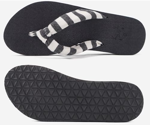 KuaiLu Flip Flops Women Arch Support Yoga Mat Comfortable Summer Beach Walking Thong Cushion Sandals Slip on Pool Outfits Travel Essentials Orthotic Slides Indoor Outdoor Slippers Shoes Black Size 10, Black White