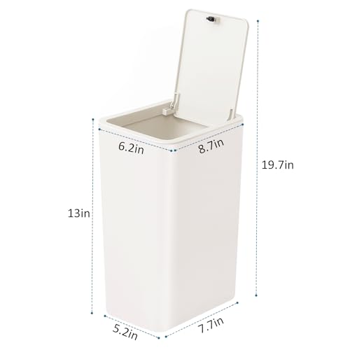 Description: TIPGO Bathroom Trash Can with Lid, 10 Liter/ 2.6 Gallon Slim Garbage Can, Small Trash Bin Waste Basket with Pop-Up Lid for Kitchen, Bedroom, Living Room, Office (2 Pack, White)